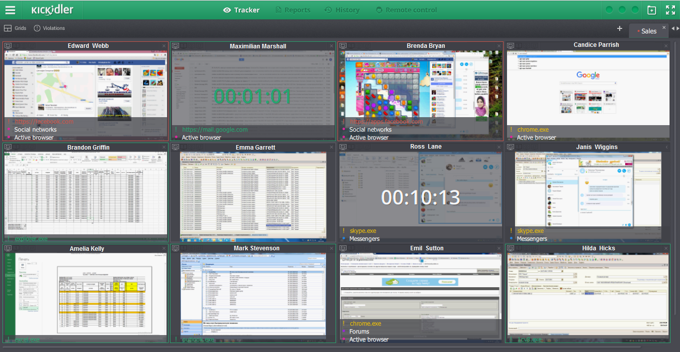 Com o Kickidler, nosso MARAVILHOSO sistema de contabilização do tempo de trabalho, você pode identificar ativamente as infrações das regras do espaço de trabalho. 🕵️♂️💻